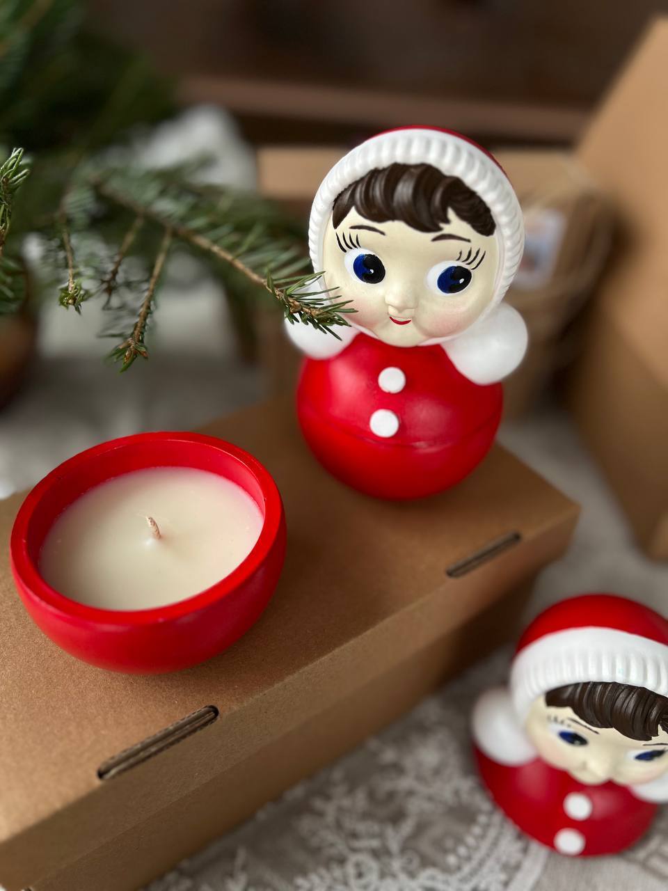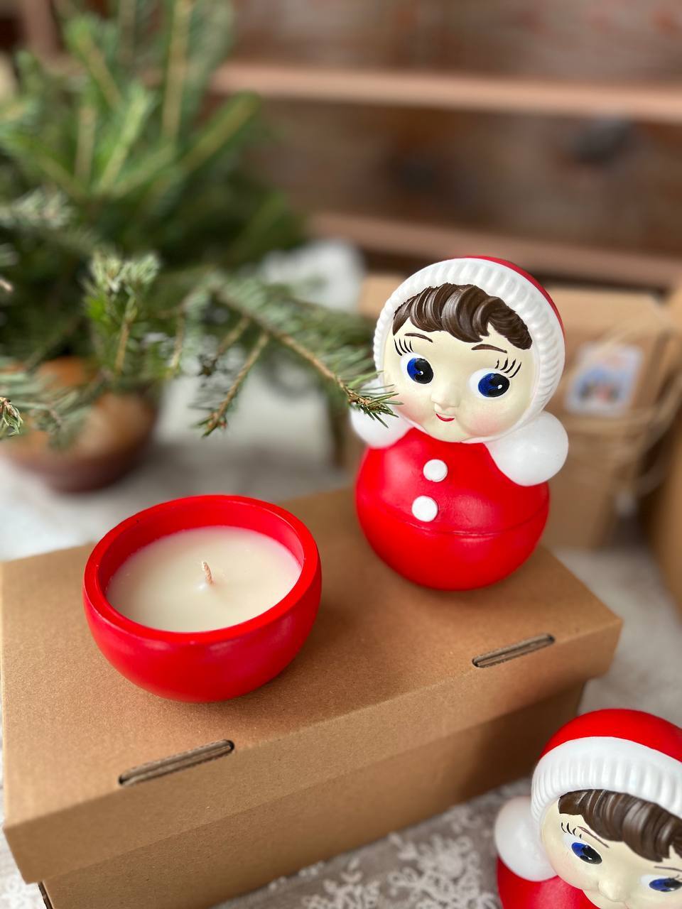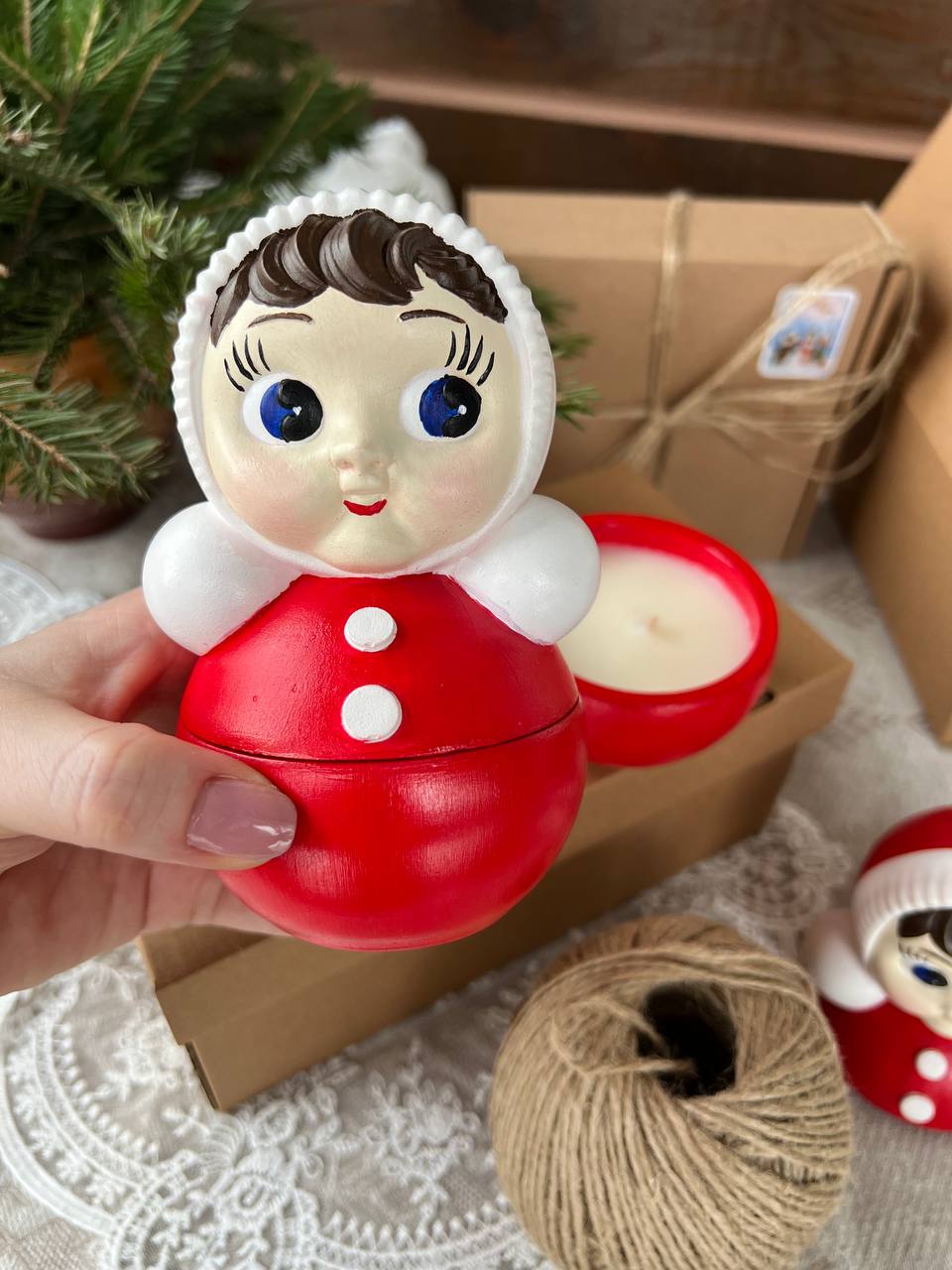 Ароматическая свеча в гипсовом подсвечник «Неваляшка» выполнена из высокопрочного гипса, наполнение соевый воск, ароматическое масло и хлопковый фитиль.